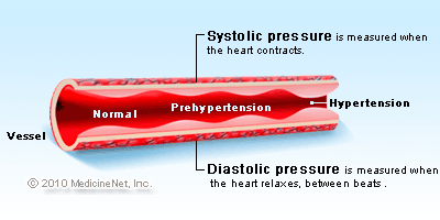 Blood pressure is the force of your blood pushing against the walls of your arteries. Each time your heart beats, it pumps blood into the arteries. Your blood pressure is highest when your heart beats, pumping the blood. This is called systolic pressure. When your heart is at rest, between beats, your blood pressure falls. This is called diastolic pressure.